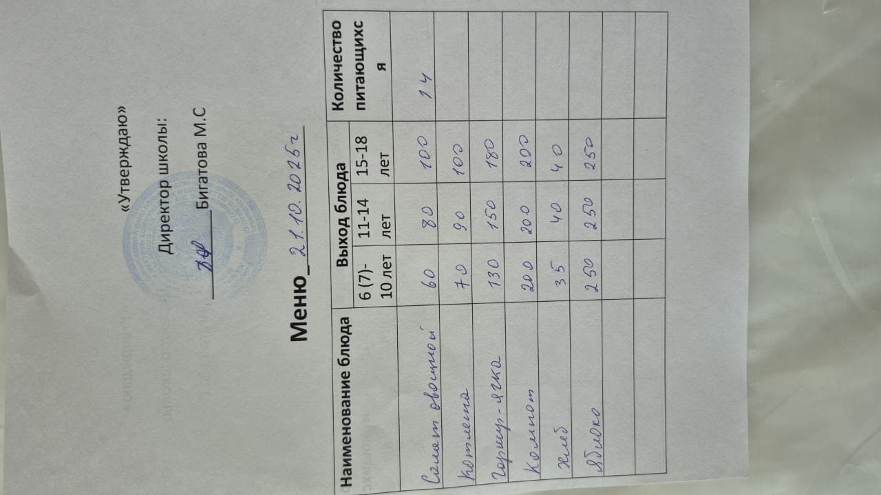 2025 жылғы 21 қазандағы ас мәзір