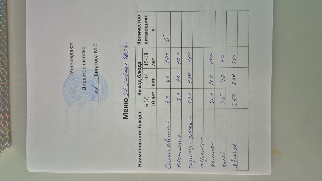 2026 жылдың 27 қаңтарына арналған мәзір