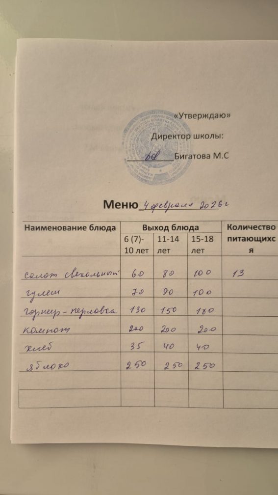 2026 жылдың 4 ақпанына арналған мәзір
