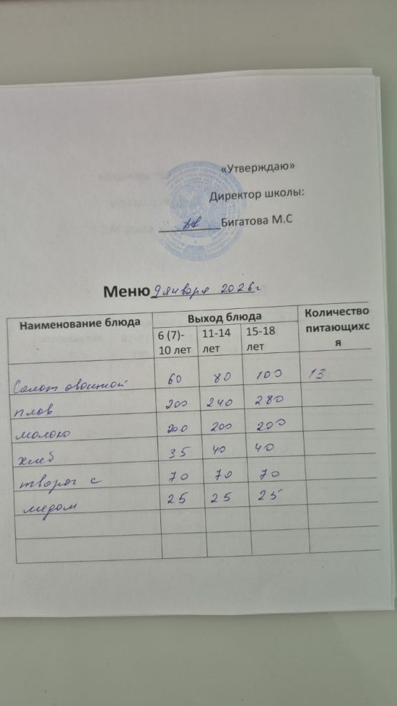 2026 жылғы 9 қаңтарға арналған ас мәзір