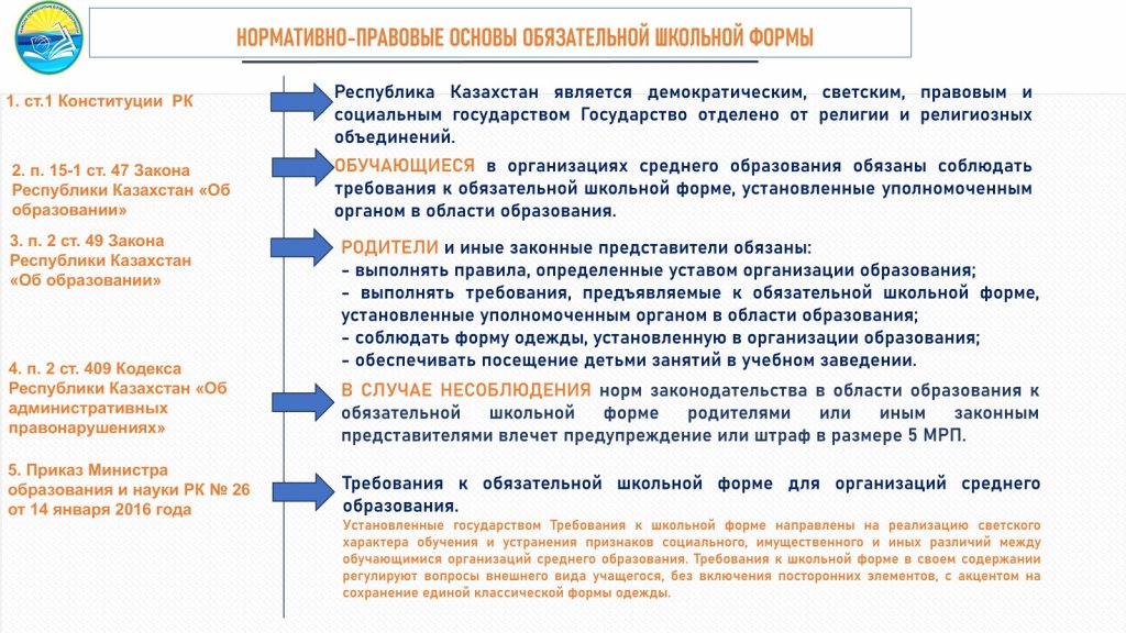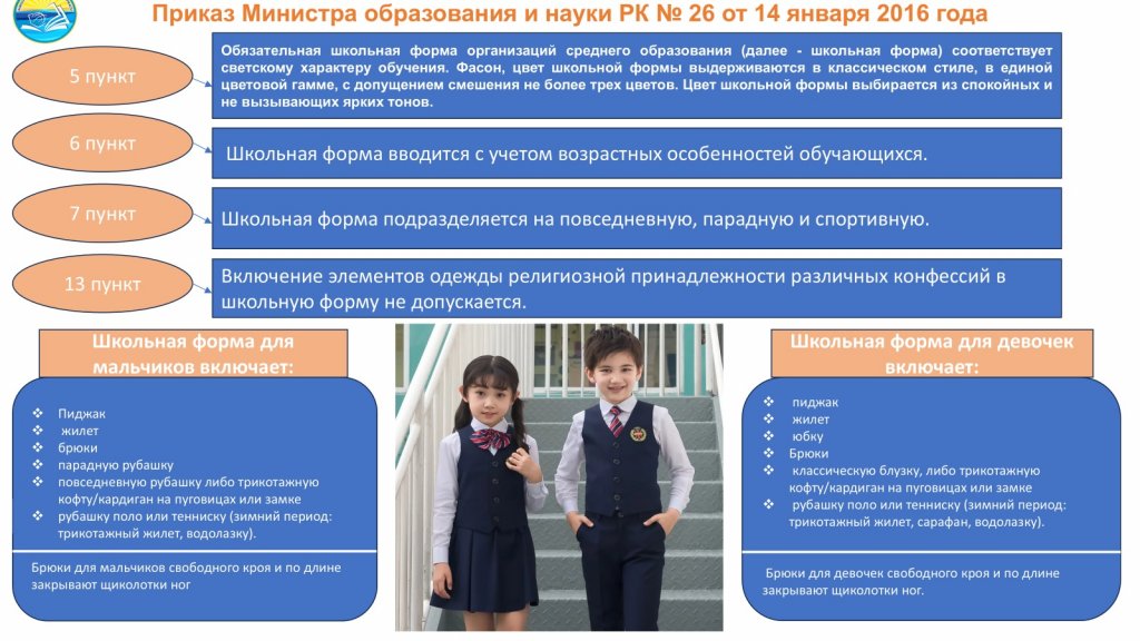 БІЛІМ БЕРУ ҰЙЫМДАРЫНДАҒЫ МЕКТЕП ФОРМАСЫНА ҚОЙЫЛАТЫН ТАЛАПТАР