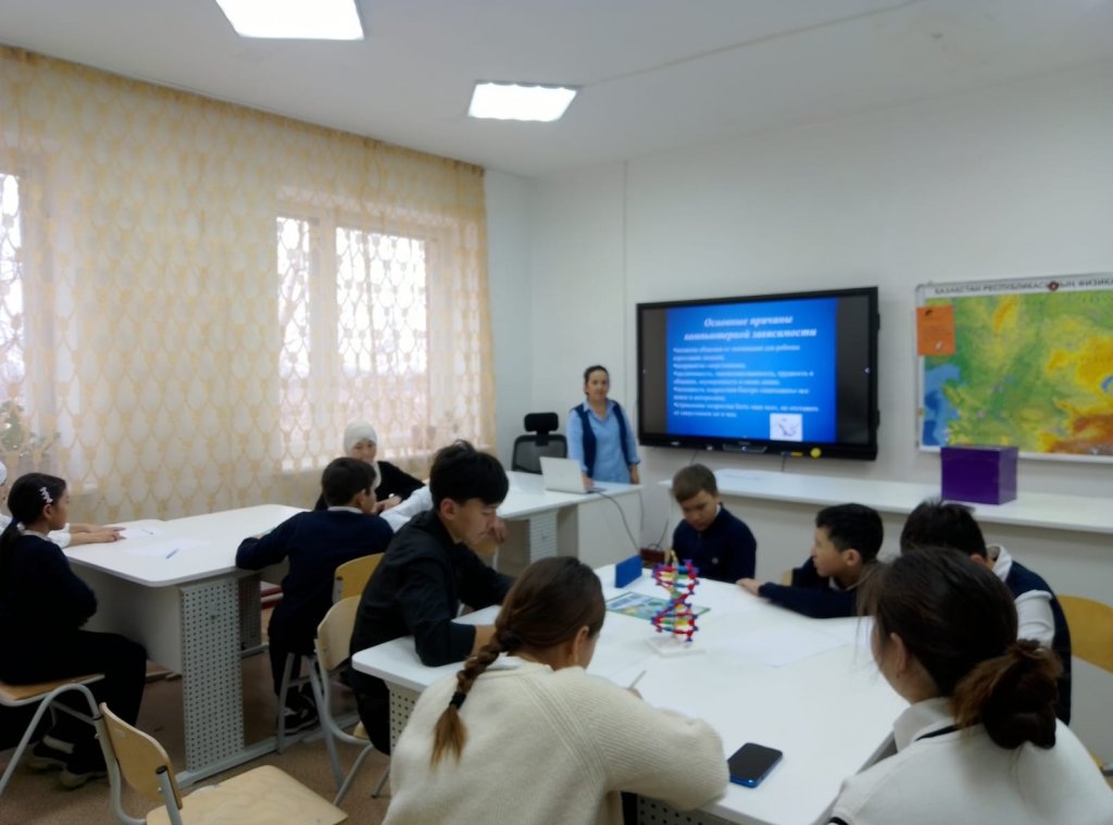 В рамках профилактической работы в школе прошла познавательная беседа на тему интернет-зависимости, которую провела заместитель директора по воспитательной работе Омирова Б.А. Цель встречи — информирование учащихся о причинах, признаках и последствиях интернет-зависимости, а также развитие навыков ответственного и безопасного поведения в цифровой среде. Беседа прошла в интерактивной форме, учащиеся активно участвовали в обсуждении и делились своим мнением.